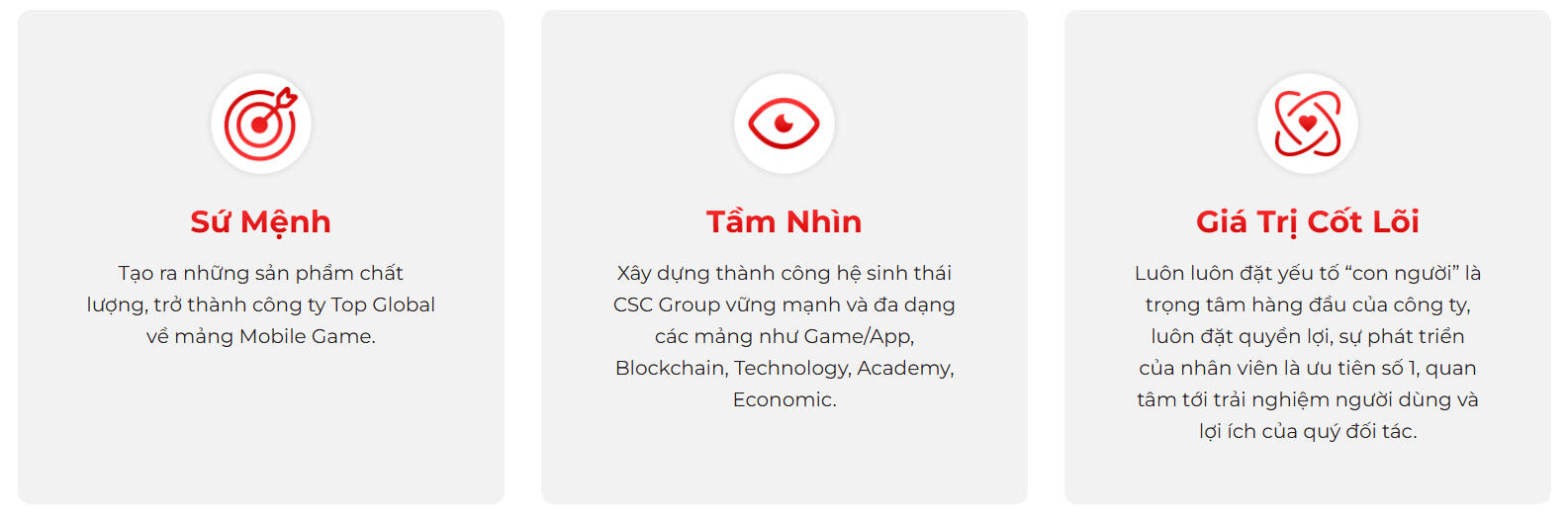 CSCMobi gồm những con người có đam mê về ngành game mobile, mong muốn tạo ra những sản phẩm game chất lượng hướng đến người dùng trong thời kỳ cách mạng công nghiệp 4.0. Slogan của chúng tôi là Creative – Speed – Crazy.